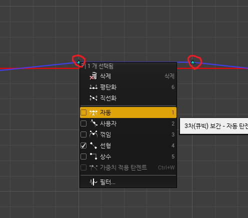 키추가는 커브위에 우클릭후 창처럼 키추카를 선택하고