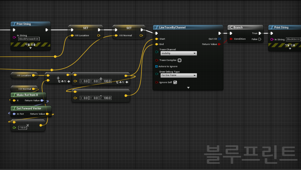 LineTrace 노드를 실행하여 충돌체의 출력을 받습니다.