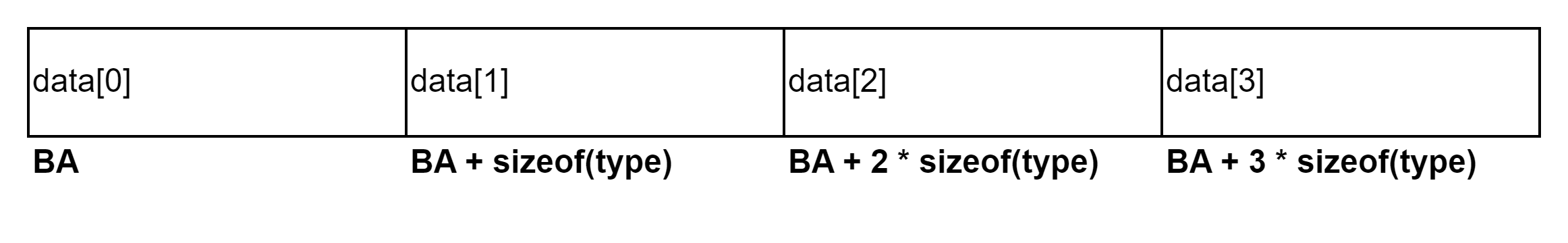 그림에서 보면 알다시피 BA는 시작주소에 sizeof(type)은 데이터 유형의 크기만큼의 공간을 갖는것이다(예로 int = 4byte, short = 2byte의 크기를 말하는거다).