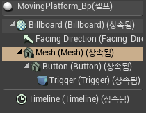 위와 같이 빌드하고 블루프린트타입으로 생성하면 아래와 같이 Timeline이라는 Component가 에디터창에 생성된걸 볼 수 있다.
