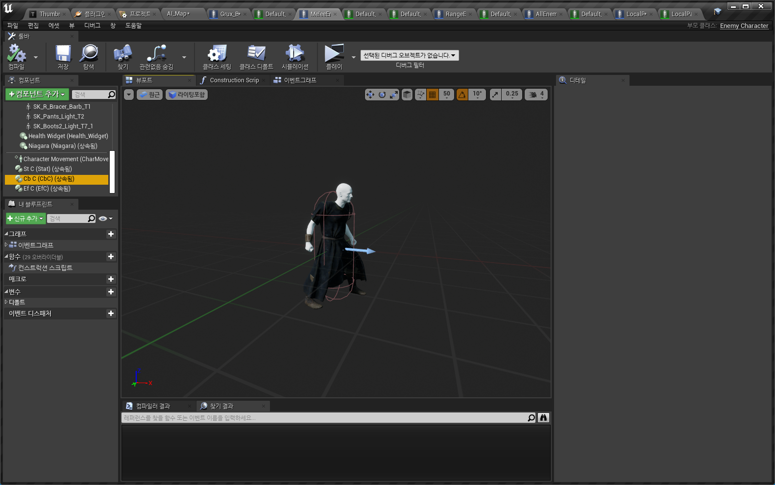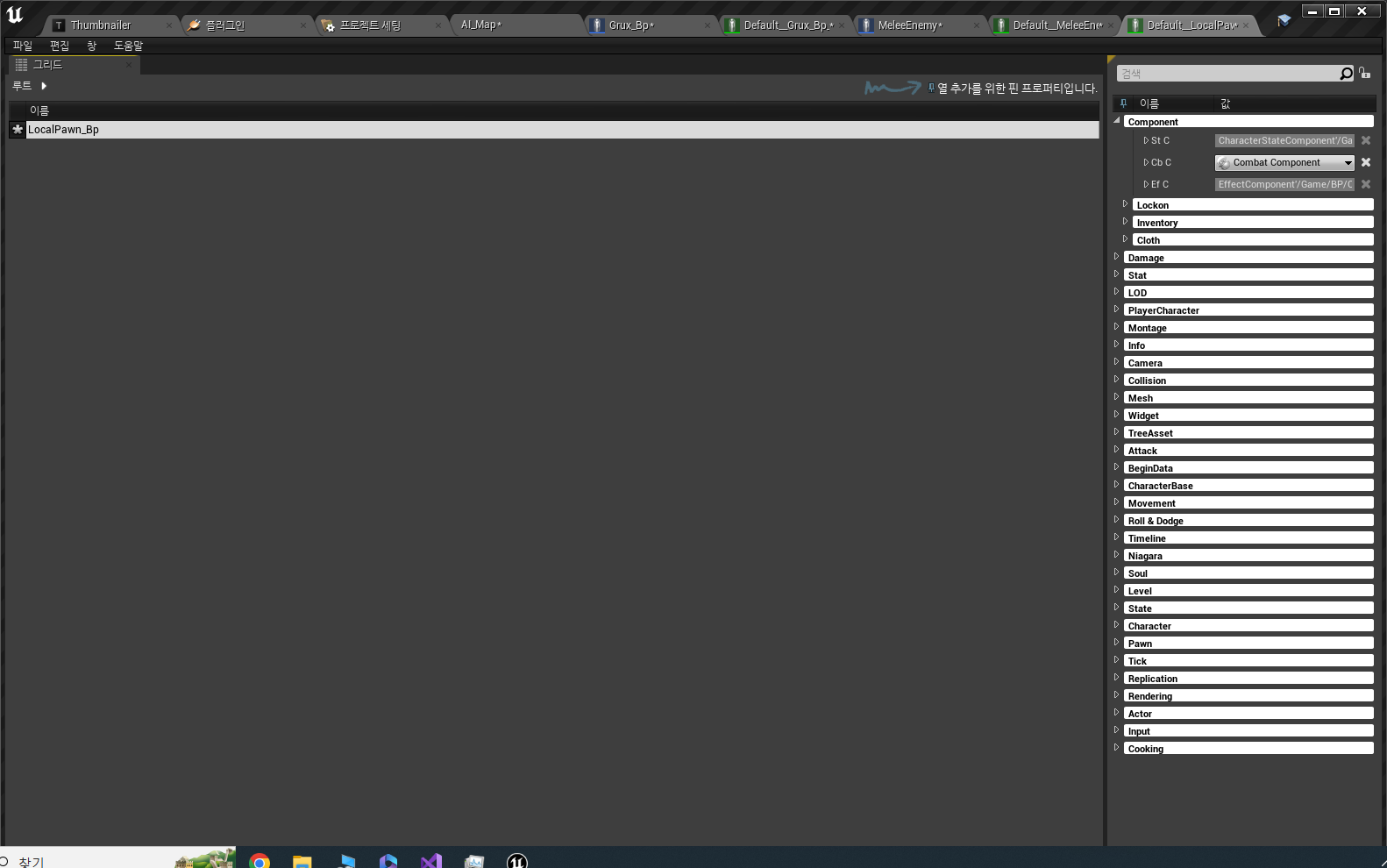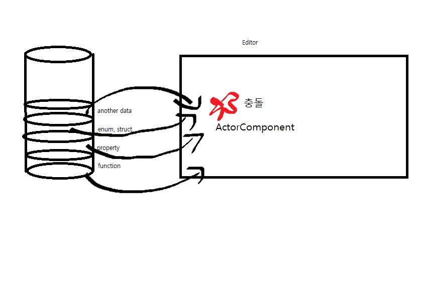 1. 거의 대부분의 오류는 c++에서 오류가 생긴다. 그래서 작업할때 해당 ActorComponent가 수정과정이 있을 경우 먼저 빌드나 컴파일을 한 후에 다시 돌아가 변수의 명을 바꾸거나 아니면 Constructor(생성자)를 선언하는 과정에서 변수명 = CreateDefaultSubobject<커스텀액터컴포넌트>(TEXT("에디터 변수명")); 에서 "에디터 변수명"을 변경하고 다시 에디터를 껏다 키는거다 (만약 이 방법대로 안할경우 완전히 초기화되기 때문에 아래 방법처럼 하는 방법이 있다).