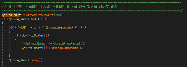 /*시작지점주석같은경우에는 스플라인의 각 포인트에 메쉬가 있지만 각스플라인의