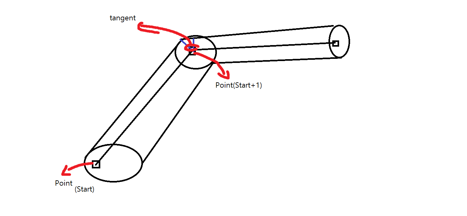 위에와 같이 각지점의 포인트가 있으면 그포인트들의 순번이 왔다고 따지만 맨왼쪽이 이제Start로 설정하고 Start, Start tangent값을 가져오는것이다. 그다음 포인트는 Start+1이라는 순번으로 따져 Start+1과 Start+1 tangent를 가져와 메쉬를 늘려준다. 그러면 하나의 스플라인메쉬가 생성되는것이다. 그다음 순번이면 Start+1였던 포인트가 다시 Start를 가져와 tangent값을 가져와 계속 자연스럽게 이어주는것이다.